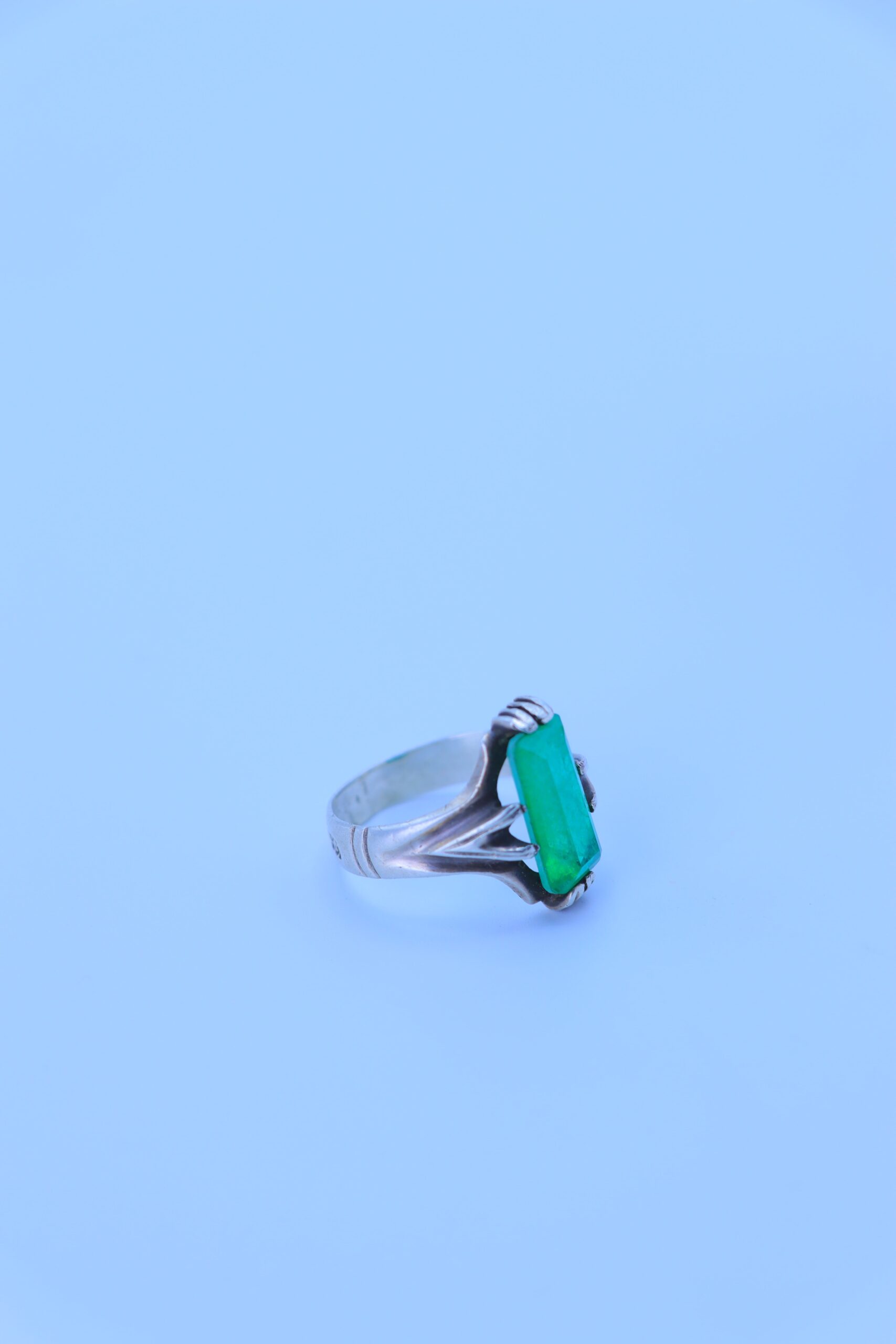 Silberring mit rechteckigem grünen Edelstein